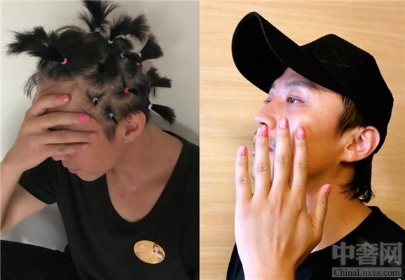 中奢网娱乐邓超被小花妹妹扎辫子,手上还有粉指甲油。近日邓超在微博晒出一张自拍照,当时他吐槽称,会死在小花妹妹手上。之见当时的超哥头上扎满小辫子,而且他的手指甲上,还被女儿涂上粉色的指甲油。